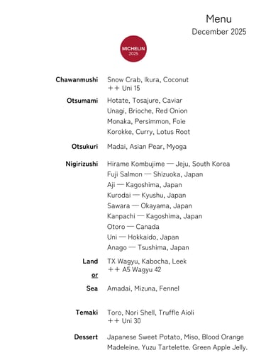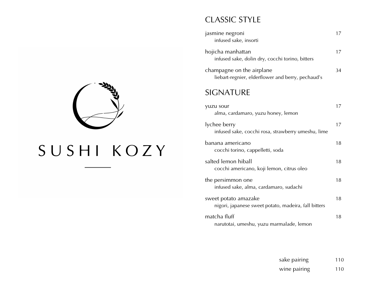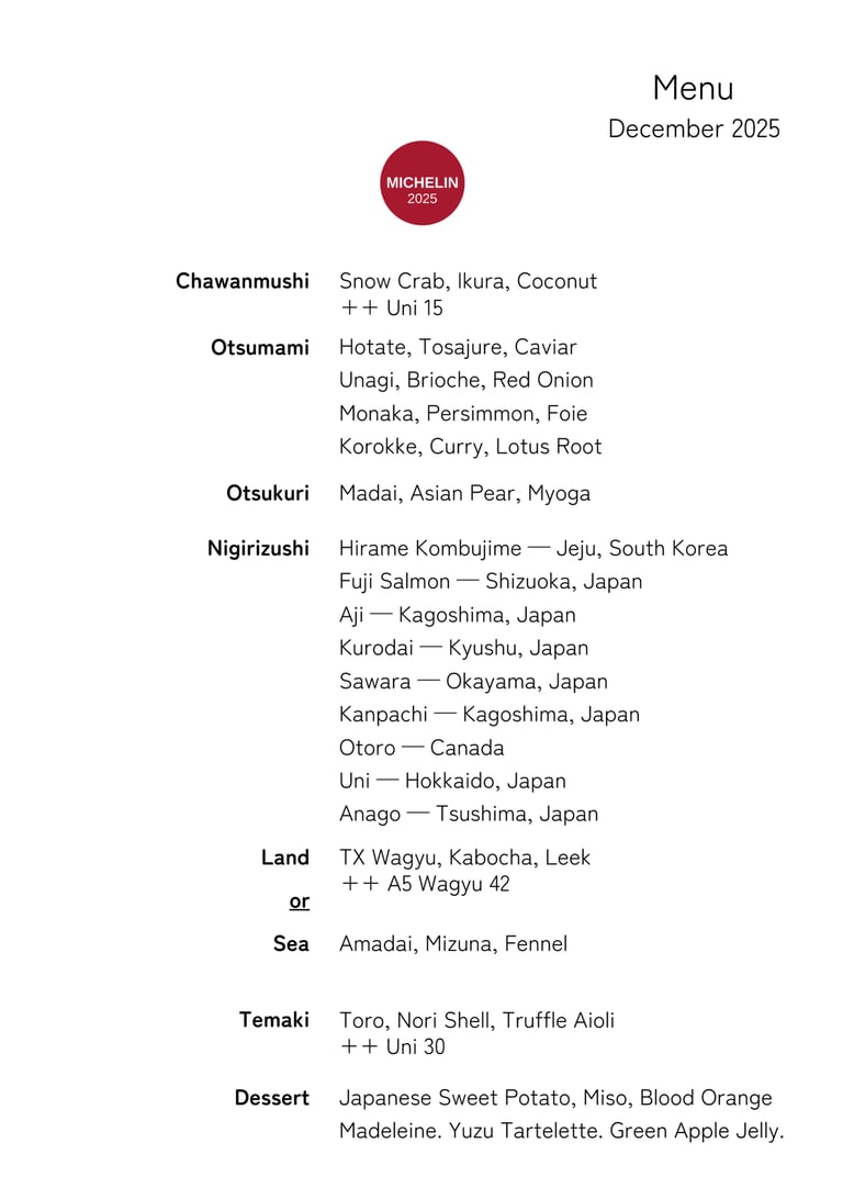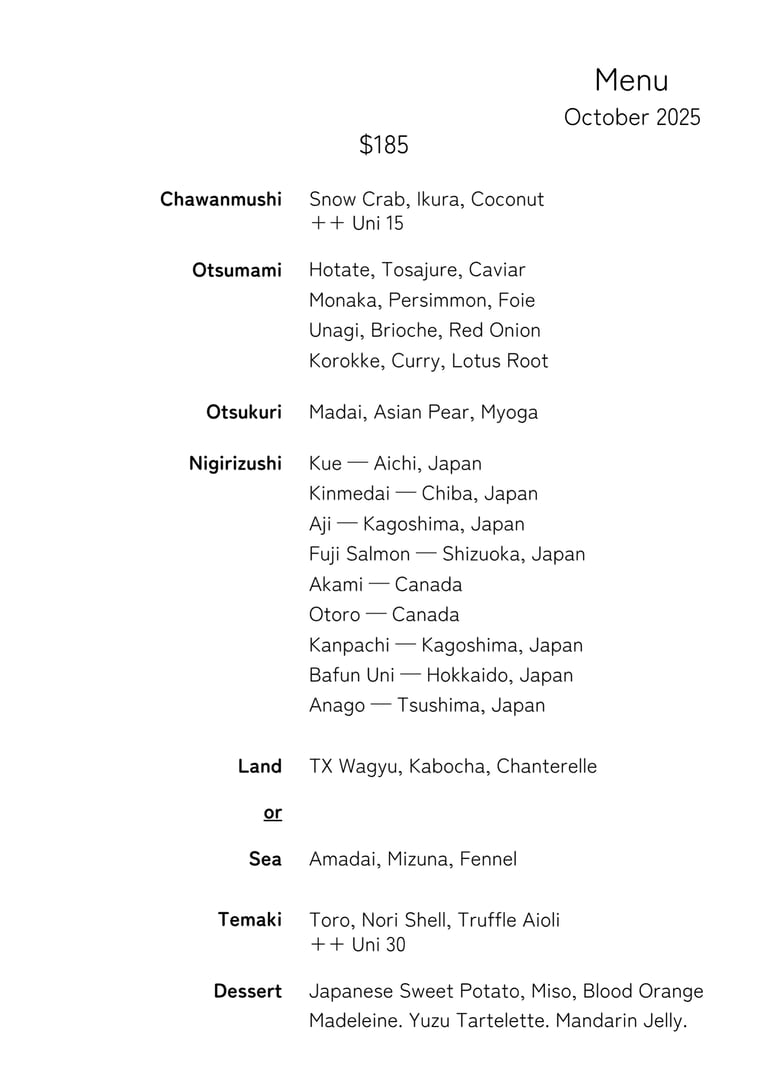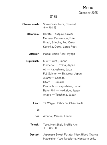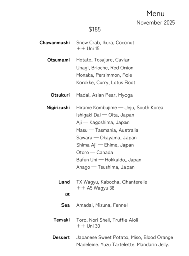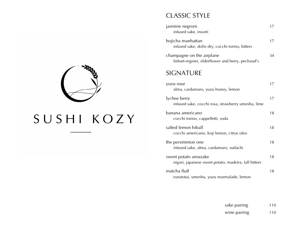 Sushi Kozy is offering a $185 per person 17-course contemporary omakase menu that highlights seasonal ingredients and the artistry of Japanese cuisine.
