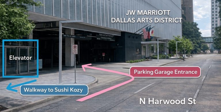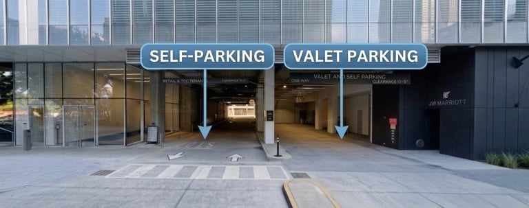 Valet parking is located in front of the JW Marriott garage entrance.