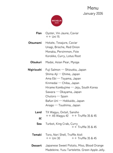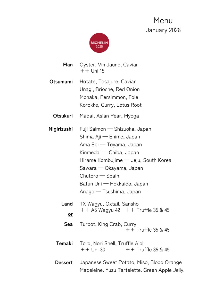 Sushi Kozy is offering a $185 per person 17-course contemporary omakase menu that highlights seasonal ingredients and the artistry of Japanese cuisine.